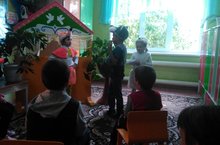 Бүген безгә кунакка доктор Айболит килде. Ул безгә бер үзегенә генә түгел , ә дуслары белән - ике төлке сеңлесе, кечкенә эт баласы һәм соры бүре килделәр. Айболит балаларга иртә-кич тешләрен ничек чистартырга, кулларны сабын белән юарга, чиста һәм пөхтә булырга кирәклеген сөйләде.