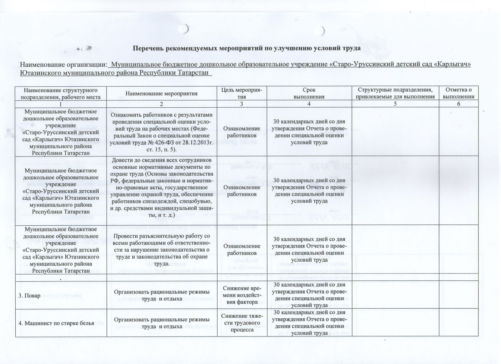 Перечень рабочих мест, на которых проводилась специальная оценка условий труда