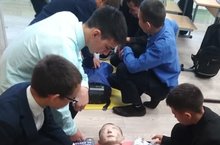 В рамках Единого дня безопасности педагог-организатор ОБЖ провел занятие, на котором дети повторили способы оказания доврачебной помощи пострадавшим при различных видах травм.