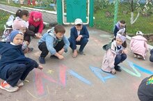 Сегодня обучающиеся начальных классов рисовали рисунки на асфальте на тему "Яркий май".