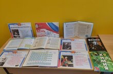 В рамках декады русского языка и литературы в библиотеке школы организована выставка "Юбиляры школы".