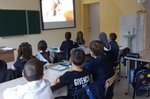 В рамках месячника безопасности на льду и на воде учащиеся 4 класса во время классного часа посмотрели и обсудили мультфильм "Будь бдительным на льду"