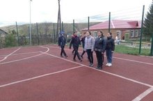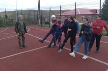 Учащиеся 8 класса репетируют свой выход на конкурс смотра строя и песни, который состоится 9 мая у мемориала в пгт Уруссу