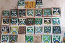 17 апреля- открытие выставки –к 30-летию Ютазинского района-30 гербов разными техниками из разных материалов