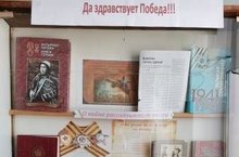 Книжная выставка в школьной библиотеке в рамках месячника военно-патриотической работы, на которой вниманию обучающихся представлены произведения русских и татарских писателей о ВОВ, а также написанных в период войны