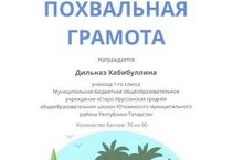 Поздравляем ученицу 1 класса Хабибулину Дильназ с призовым местом во Всероссийской онлайн-олимпиаде Учи.ру по математике! / 1нче сыйныф укучысы Хәбибулина Дилназны математикадан Учи.ру онлайн-олимпиадасында призлы урын алуы белән котлыйбыз!