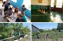 После ТБ, утренней зарядки, вкусного завтрака дети играли на свежем воздухе, воспитатели провели спортивную эстафету и экологический десант, совершили экскурсию на родник «Азат». Наши повара накормили детей вкусным и полезным обедом. Очень понравились детям игры на свежем воздухе и конкурс «Отгадай загадку». В конце дня провели инструктаж по ТБ. Ребята ушли домой довольными