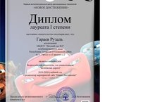Логопед төркеме тәрбияләнүчесе Гәрәева Рузалия "Куркынычсыз юл"Бөтенроссия олимпиадасының I дәрәҗә дипломы белән бүләкләнде.