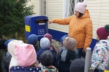 Логопедическая группа во время прогулки посетили почту воспитатель Кашапова А.М. рассказала детям о профессии почтальона