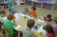 Воспитатель Солдатенко Г.М. с детьми подготовительной группы в свободное время раскрашивают рисунок пластилином, развивая тем самым мелкую моторику, мышление и речь.