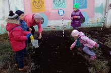 Воспитатель по обучению татарскому языку Вахитова Г.М. совместно с детьми старшей группы сажали чеснок в огородике нашего детского сада. Дети были настолько заинтересованы, что сами просились помочь, и каждый старался посадить хоть по одному чесночку.