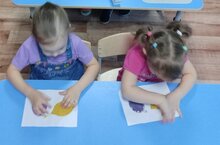 Цель: учить детей лепить предметы округлой формы, разных по величине и цвету.