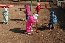 Балаларның балалар бакчасындагы бакча территориясендә көченнән килгәнчә эшләү, гап-гади экологик күзаллаулар формалаштыруга йогынты ясый.