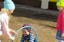 Нашим детям очень нравится играть с обручем на свежем воздухе.