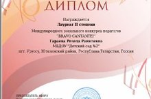 Поздравляем музыкального руководителя Гараеву Резеду Равилевну за победу в Международном вокальном конкурсе педагогов "BRAVO CANTANTE!"