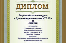 "Иң яхшы презентация - 2019" БөтенРоссия бәйгесендә 2 нче урын алган музыка җитәкчесе Гараева Резеда Равиль кызын котлыйбыз