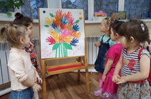 Художественно - эстетическое развитие. Аппликация на тему " Букет из веселых ладошек для мам" 25.11.2019
