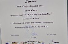Наш коллектив занял 3 место в районном конкурсе театральных миниатюр по произведениям К.И.Чуковского