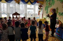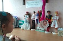 В нашем детском саду с 20 по 21 февраля 2019 года во всех возрастных группах проводятся беседы «Мой родной язык», «Национальные костюмы», кукольный театр «Кем нәрсә ярата» в старшей группе “Сказка”, татарская национальная игра «Юрта» (подготовительная к школе группа «Ромашки»), русская национальная игра «Колечко» и подвижная игра «Башмакчы» (подготовительная к школе группе «Радость»). С малышами была организована работа в национальных уголках, рассматривание альбомов о Республике Татарстан и России.