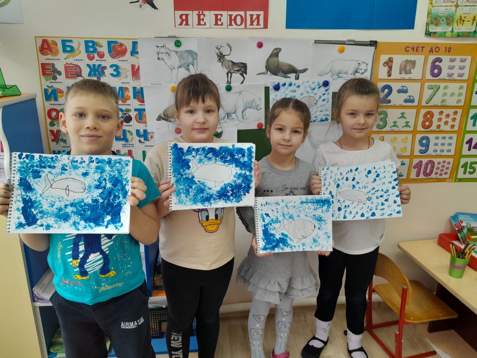 Тема недели: "Животные, птицы, рыбы севера". Рисование на тему "Белуха".