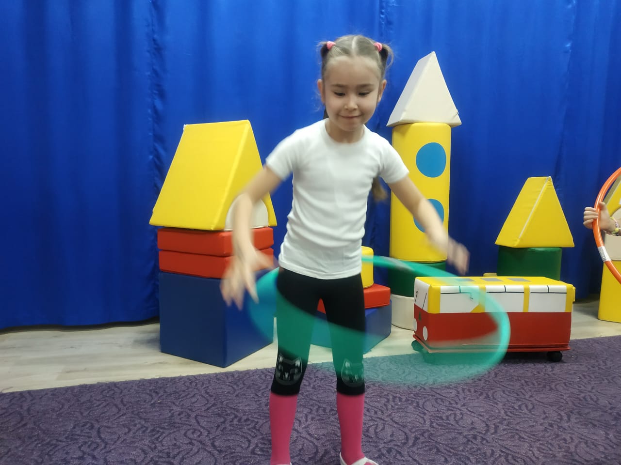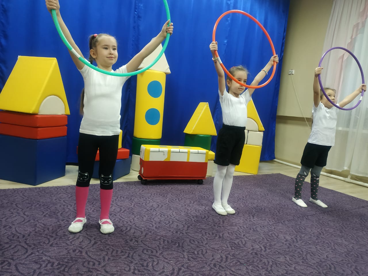 Наши воспитанники с уддовольствием по утрам выполняют ритмическую гимнастику. Ритмическая гимнастика – это гимнастика с оздоровительной направленностью, основным средством которой являются комплексы гимнастических упражнений, различные по своему характеру, выполняемые под ритмичную музыку, преимущественно поточным способом и оформленные танцевальным характером. Ритмическая гимнастика рассматривается как важный элемент двигательного режима, для поднятия эмоционального тонуса детей. Удачное сочетание физических упражнений с музыкально – ритмическими, мелодиями приобретает физкультурно – оздоровительную направленность, оказывает значительное влияние на развитие двигательных способностей дошкольников. Выполнение общеразвивающих упражнений под музыку влияет на повышение функциональных процессов организма, стимулирует работу сердечно – сосудистой и дыхательной систем, укрепляет костно-мышечный аппарат, формирует правильную осанку.