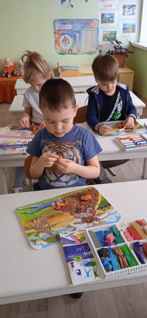 Воспитанники старшей группы лепили сегодня диких ңивотных