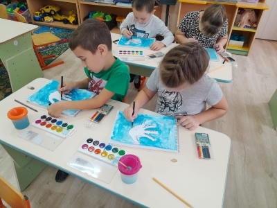 Рисование "Лебедь белая плывет"