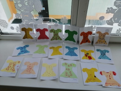Аппликация. Тема "Платье для куклы". Цель: развивать умение детей вырезать симметричное изображение, сложенное пополам, развивать чувство формы, цвета и композиции.