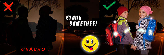 «Фликеры и безопасность детей на дорогах тесно связаны. Фликеры необходимы каждому ребенку, который передвигается по городу или за его чертой в темное время суток». Они делают пешехода заметным и уменьшают вероятность аварии на 65%.