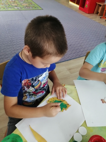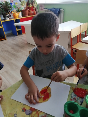 Нетрадиционное рисование-печать листьями. Развиваем воображение, нестандартное мышление, мелкую моторику, речь, закрепляем знания о признаках осени, о деревьях. Воспитываем аккуратность, бережное отношение к природе.