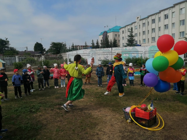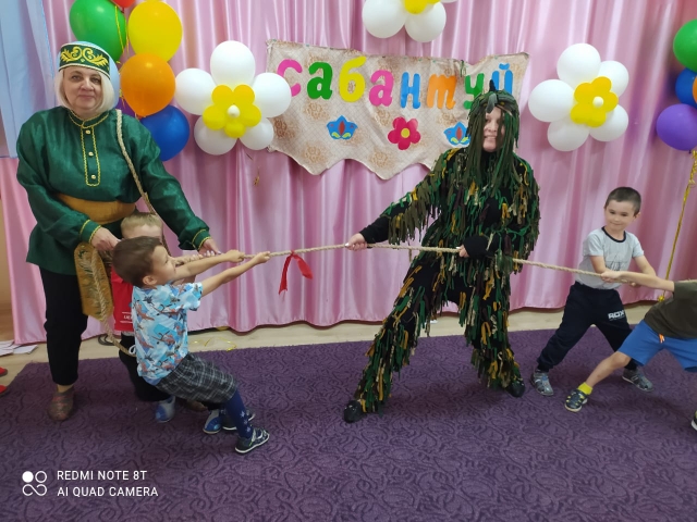 В нашем детском саду тоже прошел праздник. Сначала - открытие праздника, потом национальные игры. Гостями праздника были герои Батыр и Шурале. Дети получили массу положительных эмоций.