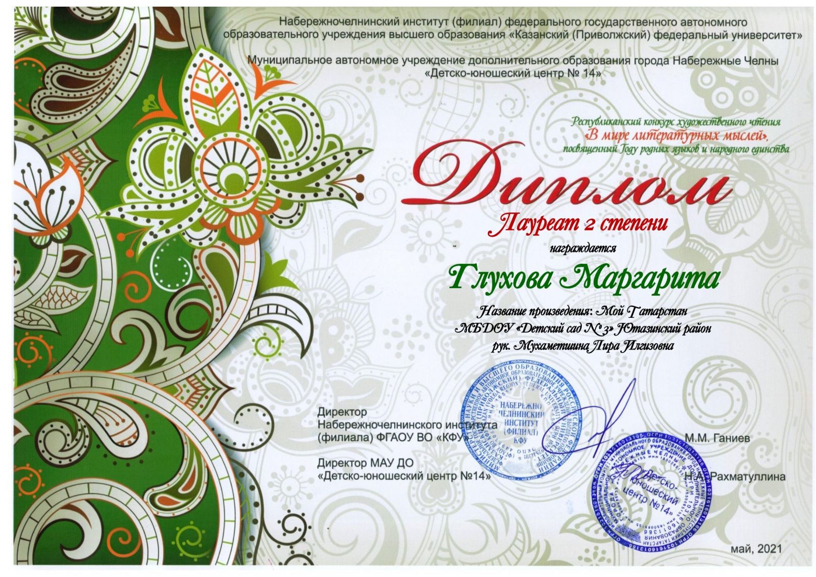 | Руководитель: | Нигматуллина Олеся Борисовна |