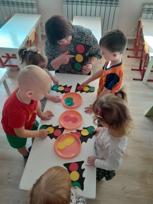 Воспитанники старшей группы с помощью дидактической игры "Безопасный переход", закрепили правила дорожного движения, направленные на сохранения жизни и здоровья людей .