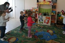Цель: приучать детей бегать в разных направлениях, не наталкиваясь друг на друга, начинать движение и менять его по сигналу воспитателя, находить своё место.