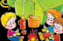 Я вчера ходил в поход -Кашу съел и бутерброд!Я сложил в рюкзак игрушкиМячик, удочки, подушку,Взял продукты на неделю,Книжку, папину гантелю,Кружку, ложку, котелок....А поднять рюкзак не смог.Даже сдвинуть не сумел!Значит каши мало съел. -