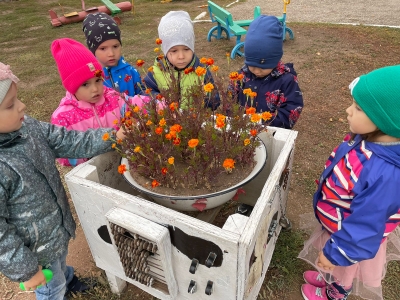 Мы по садику гуляли, за природой наблюдали. Без табигатьне карап, бакча буйлап йөрдек.