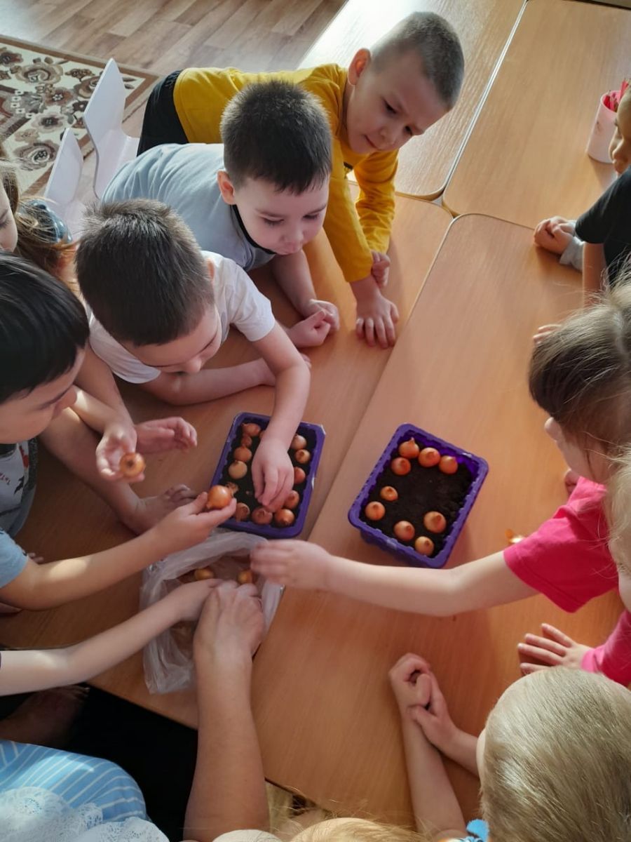 Дети средней группы вместе с воспитателем Имаевой Лилией Талагтовной высадили головки лука в питательную среду для определения наиболее благоприятных условий его развития.