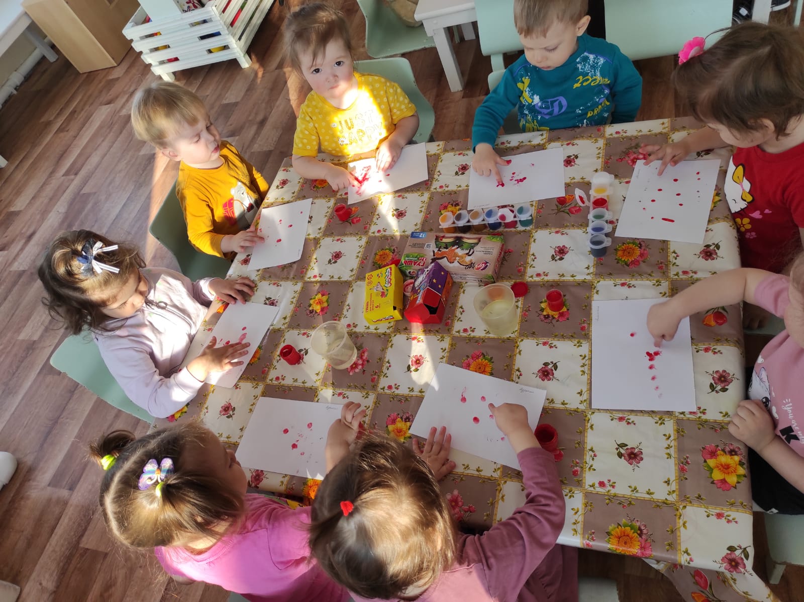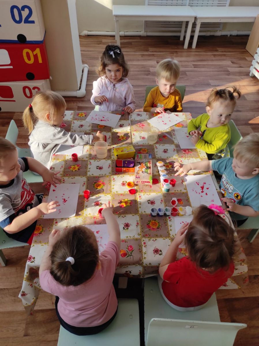 Рисование пальчиками "Ягодки для птичек" (первая младшая группа)