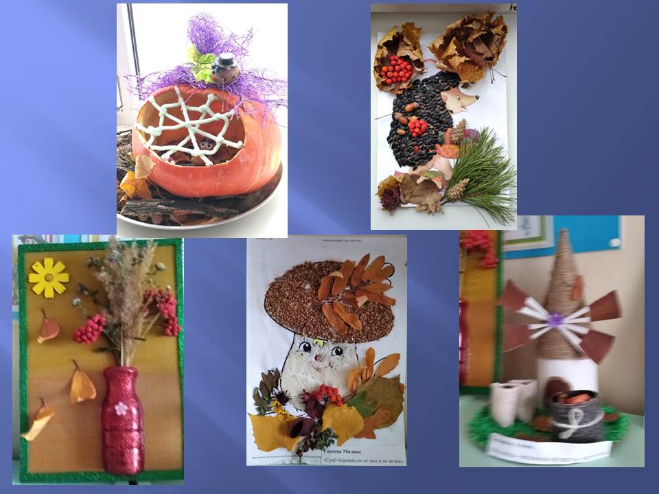 С целью расширения представлений детей дошкольного возраста о времени года -осень, вовлечения родителей в педагогический процесс в нашем детском саду организована выставка совместного творчества детей и родителей "Осень разноцветная в гости к нам пришла!"