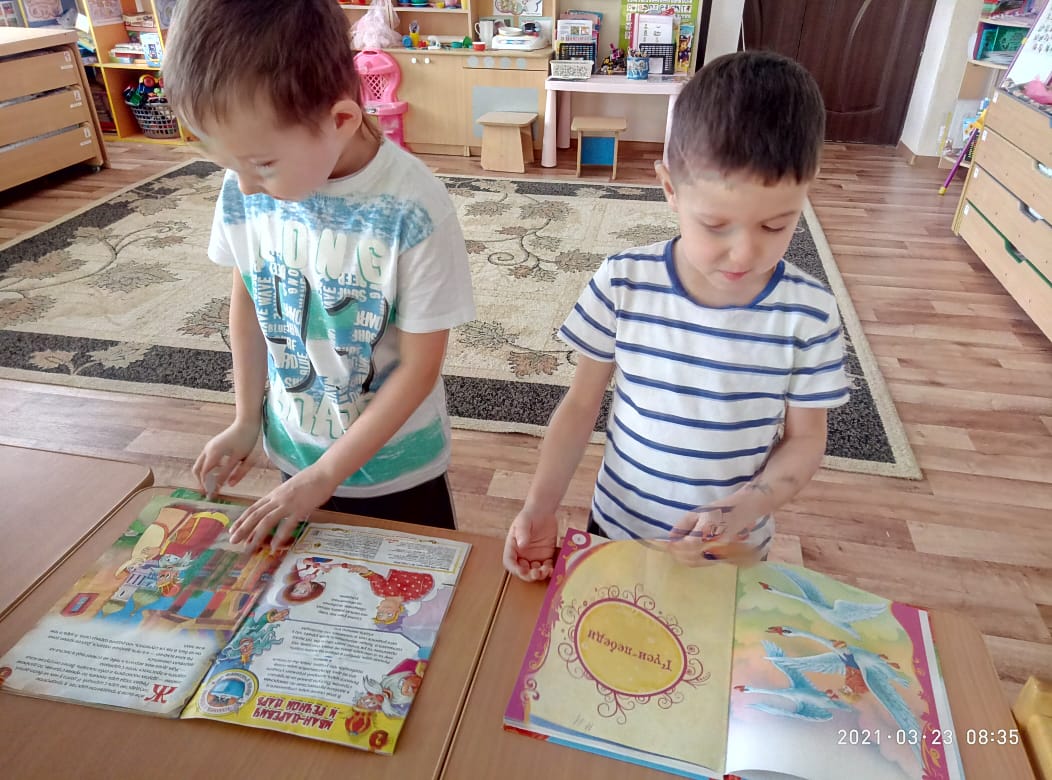 День второй - "День детской книги" - рассматривание портретов детских писателей, беседа "Наши друзья - книги", дидактические игры, чтение художественной литературы