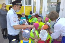 Сегодня в нашем детском саду прошла акция в рамках месячника безопасности. Начальник ОГИБДД Ютазинского муниципального района Республики Татарстан Гареев Марс Миннуголович провел с ребятами беседу о правилах для пешеходов и пассажиров. Воспитанники старше-подготовительной к школе группы поделились знаниями об удерживающих устройствах в автомобиле, о правилах движения на пешеходном переходе. Также пешеходам и водителями были вручены памятки "Я - участник дорожного движения!". Начальник Бавлинского ФГУ "ДИРЕКЦИЯ ФИНАНСИРОВАНИЯ НАУЧНЫХ И ОБРАЗОВАТЕЛЬНЫХ ПРОГРАММ БЕЗОПАСНОСТИ ДОРОЖНОГО ДВИЖЕНИЯ РЕСПУБЛИКИ ТАТАРСТАН" Игнатьева Р.И. и начальник ОГИБДД Ютазинского муниципального района Республики Татарстан Гареев М.М. поадрили ребятам памятные подарки - книги-раскраски и светоотражающие элементы.