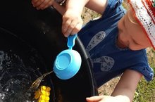 Опыты с водой: вода принимает форму сосуда, в котором находится и ёё можно покрасить.