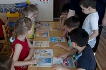 Рассматривание иллюстраций "Один дома". Дети закрепляли правила поведения в чрезвычайных ситауциях.