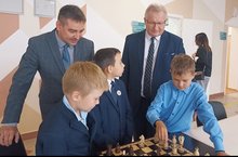 Шахматная партия гимназистов с гостями️: заместителем руководителя исполнительного комитета по социальным вопросам Рузановым С. А и начальником отдела образования Абрамовым С. А.