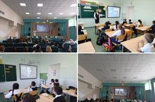 После церемонии, в актовом зале учитель географии Марина Андреевна Вахламова провела занятие на тему «Там, где Россия» из цикла «Разговоры о важном». Тема урока очень интересная и важная, она помогает прививать детям любовь к родине , воспитывать патриотизм. На уроке просмотрели фрагменты фильмов, видеоролик, прослушали интересное интервью с полярным путешественником Матвеем Шпаро, ответили на вопросы интерактивного теста об экопрофессиях будущего. А в начальных классах просмотрели фрагмент мультфильма « Паровозик из Ромашково», отгадывали загадки , обсудили направление « Туризм и путешествия» организации «Движение Первых»).