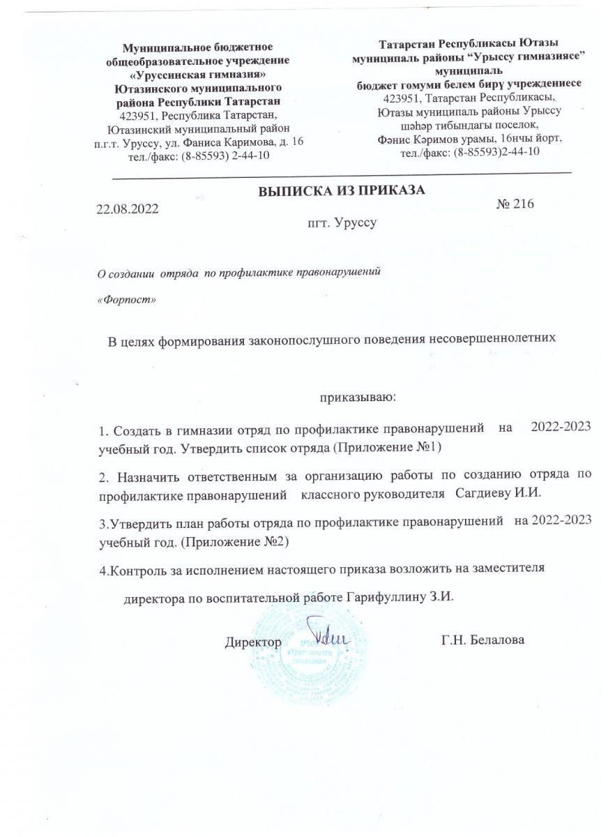| Короткое название: | МБОУ "Уруссинская гимназия" |