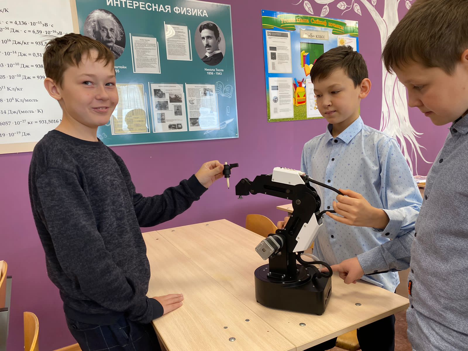 - 13 декабря,в рамках предметной недели физики и информатики, ученики 10 класса научили младших школьников играть в шахматы с использованием робота - манипулятора. Фото