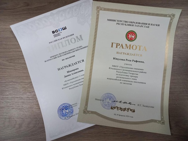 - Ученица 11 класса Диана Шакирова стала призёром Регионального этапа Всероссийской олимпиады школьников по экологии (учитель Юнусова Р. Р.) . Фото