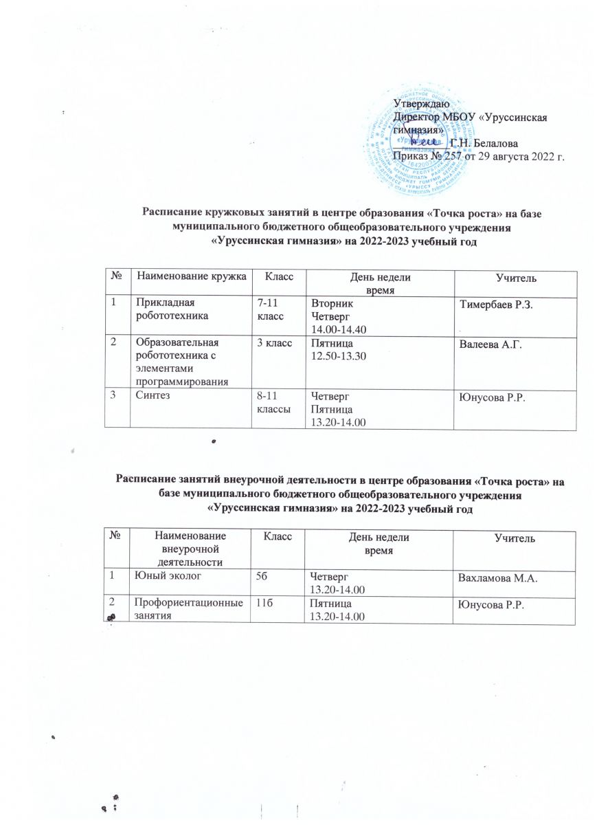 Расписание кружковой и внеурочной деятельности "Точка роста" Посмотреть