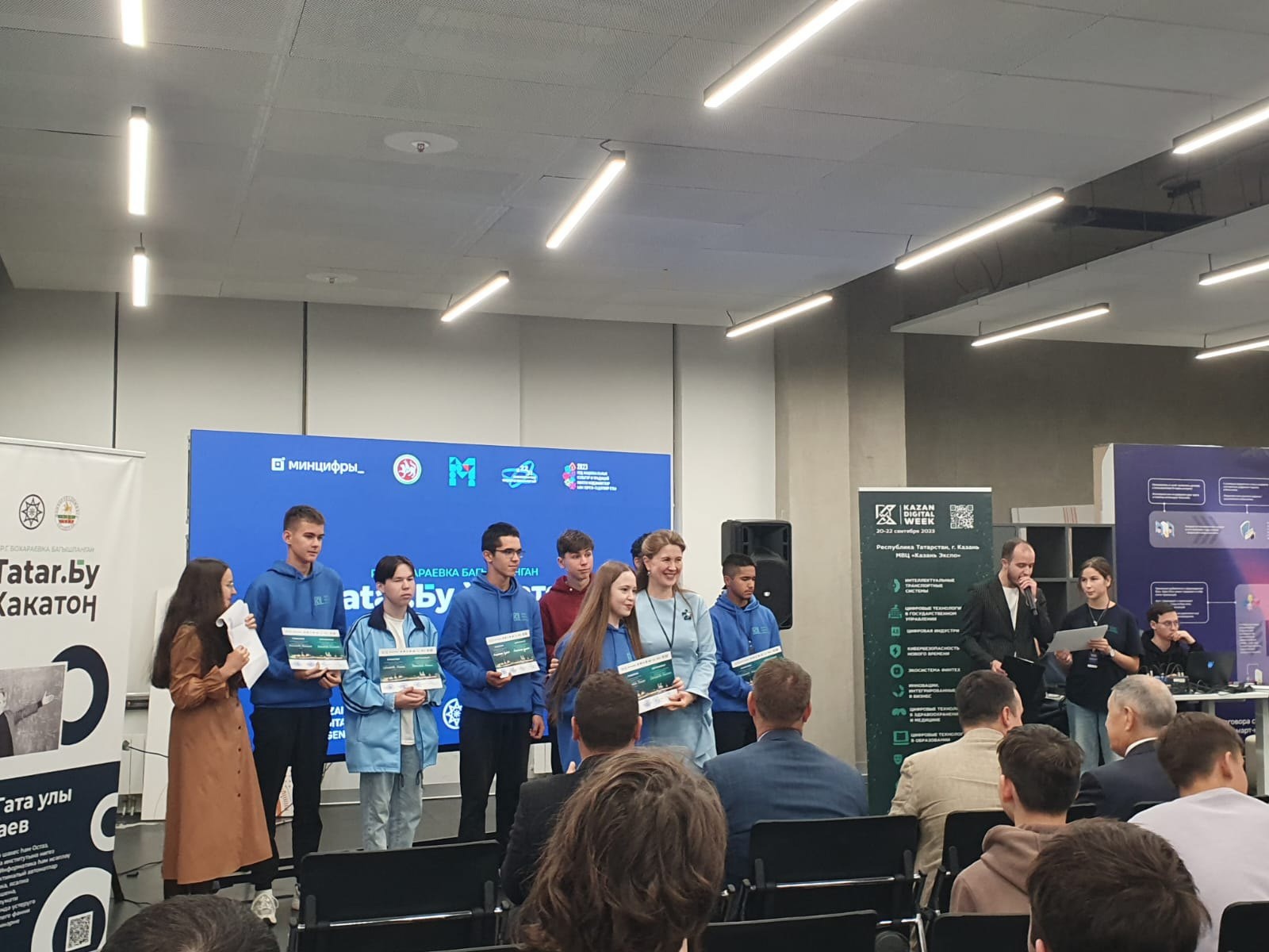 10 сентября участники представили свои итоговые проекты на финальной презентации Хакатона.В финал прошли всего 5 команд, в том числе и наши гимназисты. Поздравляем! Фото - Гимназисты под руководством Тимербаева Р. З. принимают участие в международном форуме, Kazan Digital Week 2023, который проходит в г. Казань с 20-22 сентября.В церемонии открытия приняли участие министр цифрового развития РФ Максут Шадаев и президент РТ Рустам Минниханов.Это крупнейшее региональное мероприятие. Из года в год количество участников увеличивается на этой площадке. Фото
